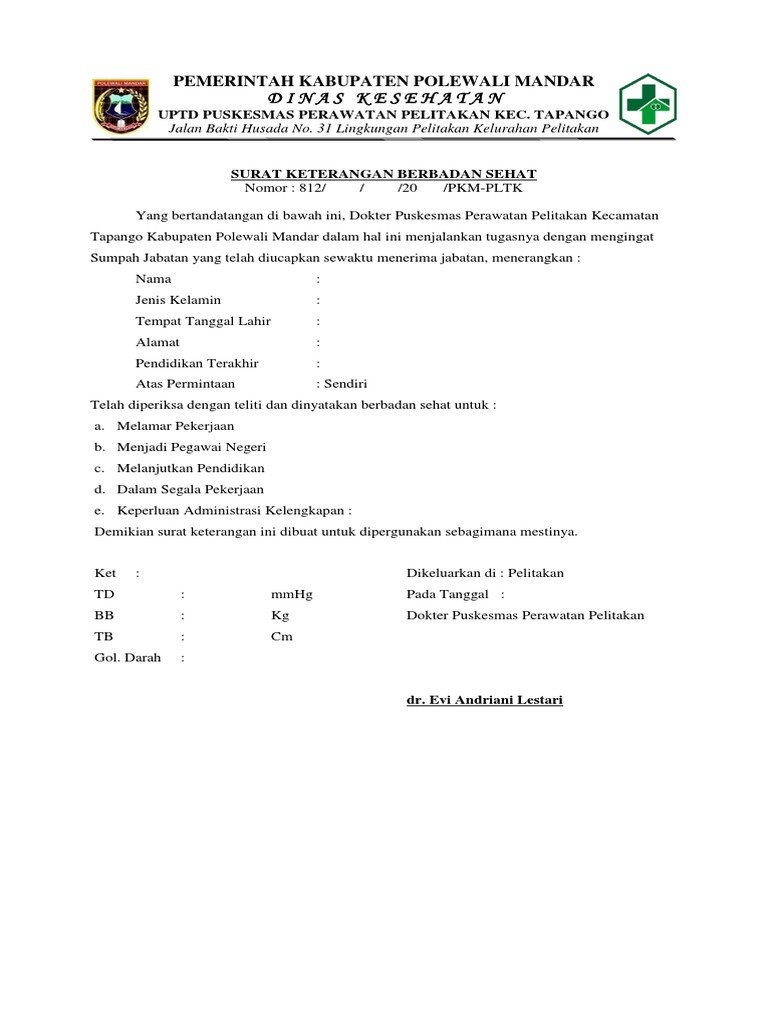Melalui Aplikasi Ini Kami Memberikan Panduan dan Cara untuk Membuat Surat Keterangan Sehat dengan Cara Yang Mudah. Alur Pembuatan Surat Keterangan Sehat dan Bebas Narkoba di Kantor Kepolisian. Misal untuk syarat melamar kerja, pindah domisili, syarat kerja keluar kota, dan lain sebagainya. • Cara Bayar Tagihan Listrik via m-Banking BCA, Tak Perlu Repot-repot Datang ke Loket • Cara Mendeteksi Odomoter Digital yang Pernah.